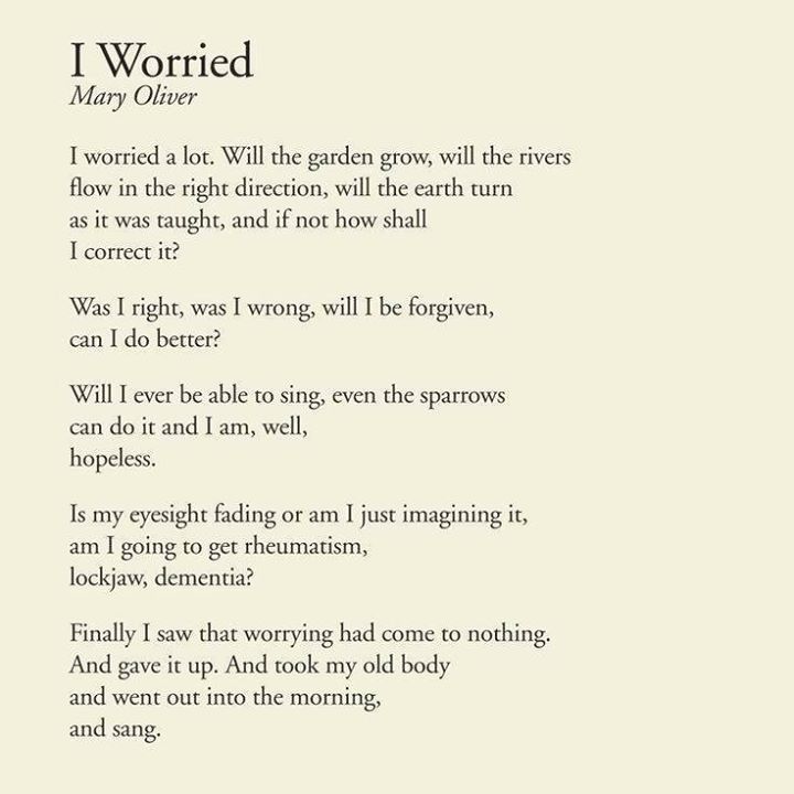 She also read a touching Mary Oliver poem, but I can’t seem to remember what it was called. I just found this one, which is also gorgeous and rings so true.